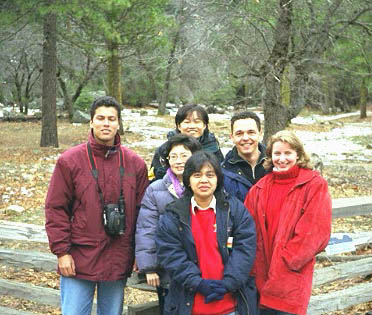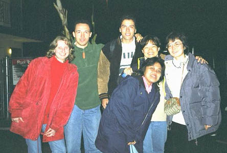 photo est prise à la descente du bus, devant le motel le 31 au soir. For Newyear's eve we went to the Yosemit park. This picture has been taken in front the motel, the december 31. |