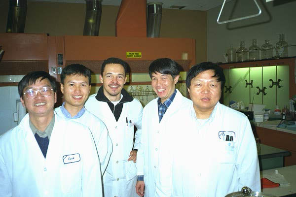 George, Chao Long, moi, Lewis et Chenxi. At job with the chemist team of water quality bureau. |